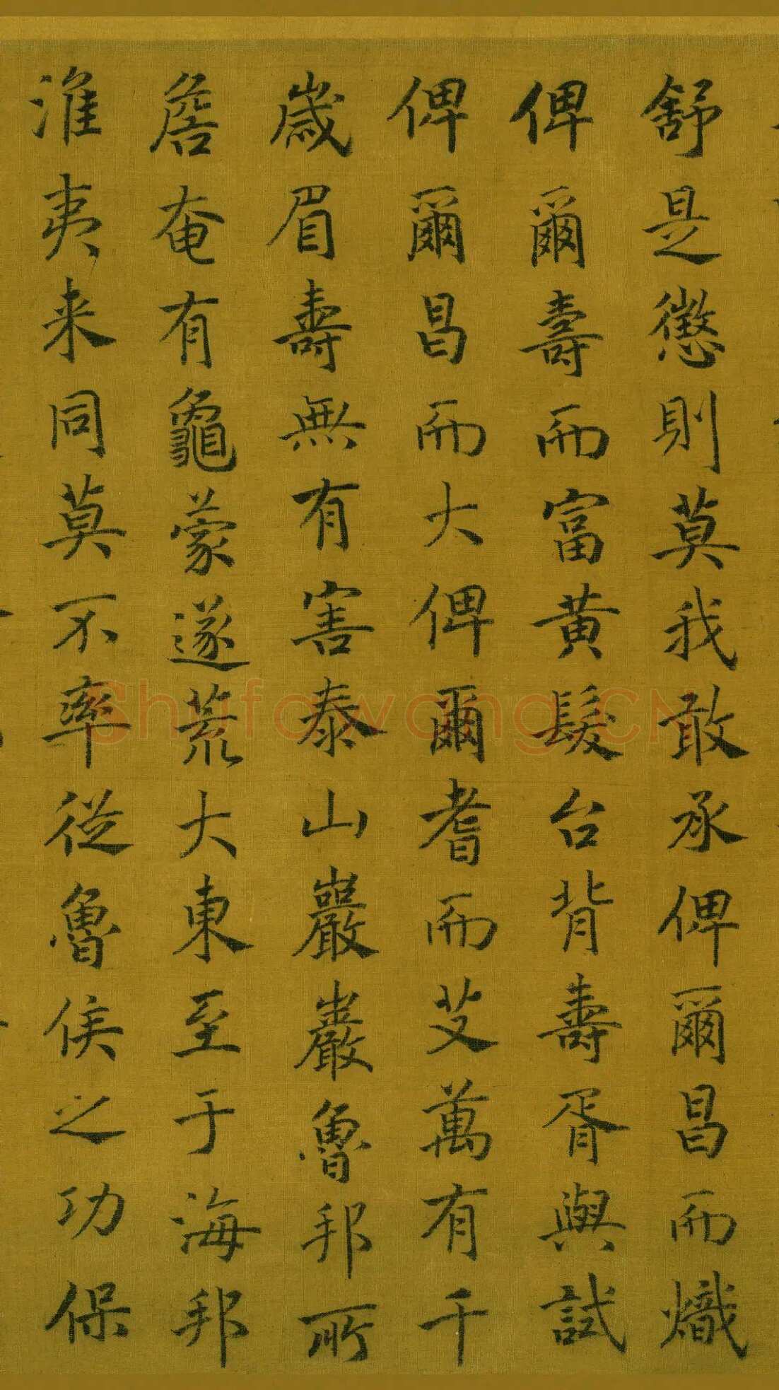 【11】舒是惩,则莫我敢承。俾尔昌而炽,俾尔寿而富。黄发台背,寿胥与试。俾尔昌而大,俾尔耆而艾。万有千岁,眉寿无有害!泰山岩岩,鲁邦所詹。奄有龟蒙,遂荒大东。至于海邦,淮夷来同。莫不率从,鲁侯之功!保