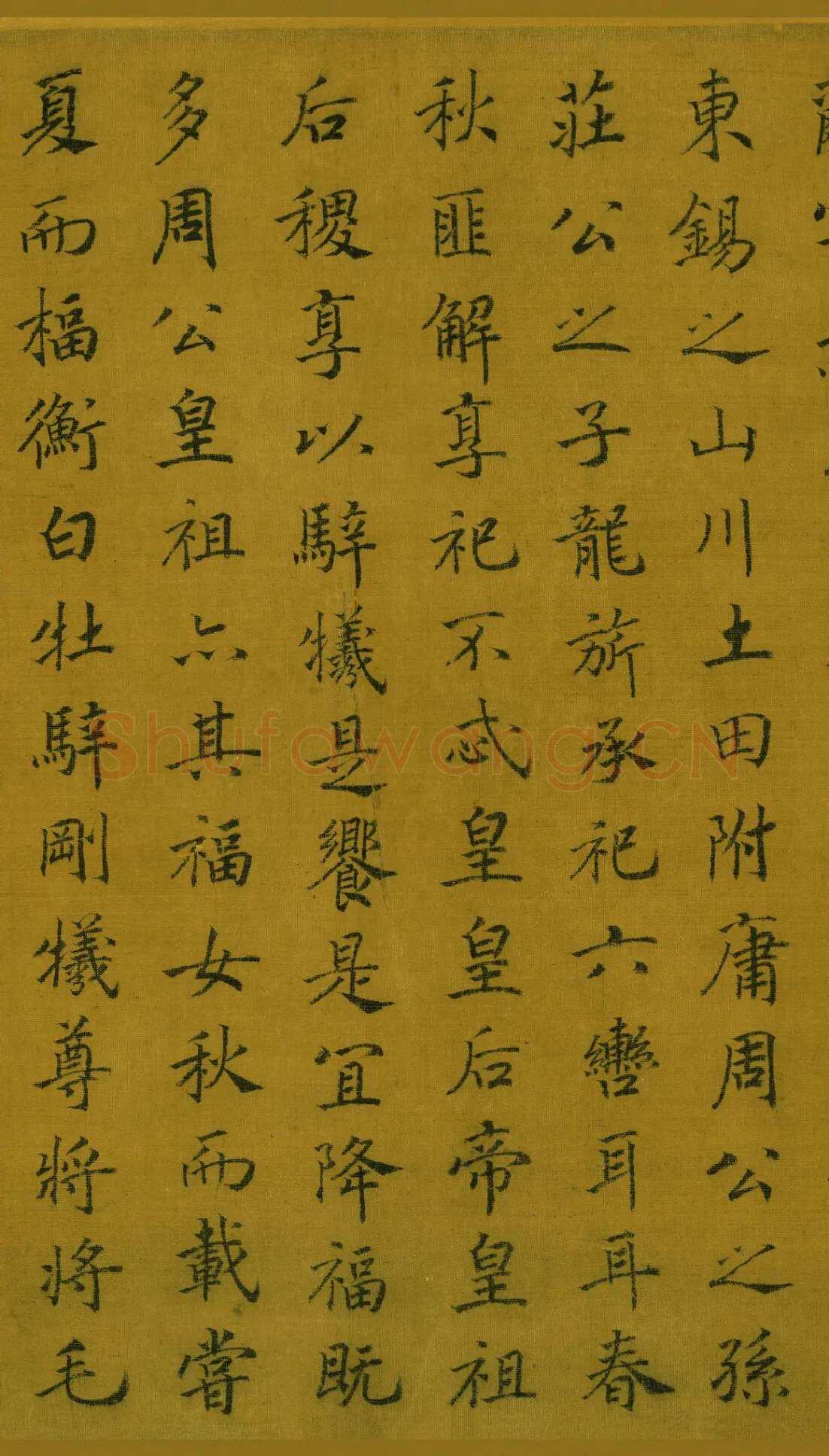 【9】东。锡之山川,土田附庸。周公之孙,庄公之子。龙旂承祀。六辔耳耳。春秋匪解,享祀不忒:皇皇后帝,皇祖后稷。享以骍牺,是飨是宜。降福既多,周公皇祖,亦其福女。秋而载尝,夏而楅衡。白牡骍刚,牺尊将将。毛