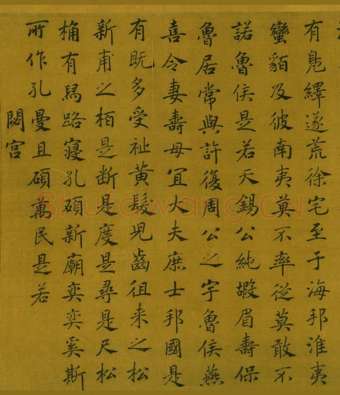 【12】有凫绎,遂荒徐宅。至于海邦,淮夷蛮貊。及彼南夷,莫不率从。莫敢不诺,鲁侯是若!天锡公纯嘏,眉寿保鲁。居常与许,复周公之宇。鲁侯燕喜,令妻寿母。宜大夫庶士,邦国是有。既多受祉,黄发儿齿。徂徠之松,新甫之柏。是断是度,是寻是尺。松桷有舄,路寝孔硕,新庙奕奕。奚斯所作,孔曼且硕,万民是若!《閟宫》