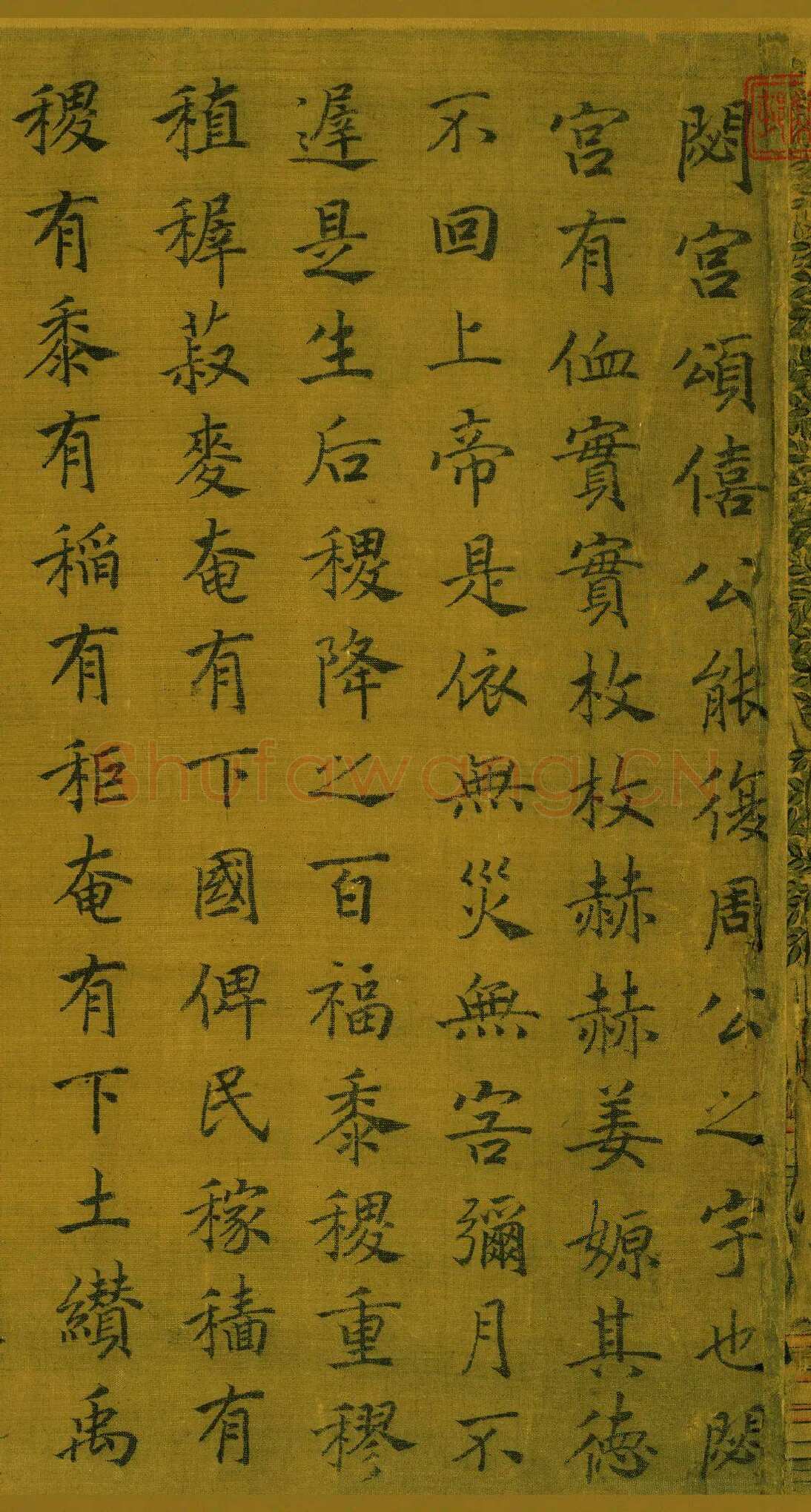 【7】《閟宫》,颂僖公能复周公之宇也。閟宫有侐,实实枚枚。赫赫姜嫄,其德不回。上帝是依,无灾无害。弥月不迟,是生后稷。降之百福。黍稷重穋,稙稚菽麦。奄有下国,俾民稼穑。有稷有黍,有稻有秬。奄有下土,缵禹