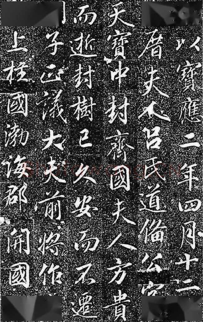 【20】公以宝应二年四月十二日安厝。。夫人吕氏道备公宫,天宝中封齐国夫人方贵而逝,封树已久,安而不迁。嗣子正议大夫,前将作少监,上柱国,渤海郡开国公