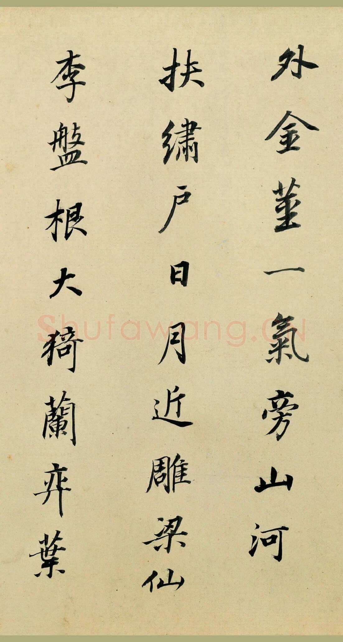 【2】外,金茎一气旁。山河扶绣户,日月近雕梁。仙李盘根大,猗兰奕叶