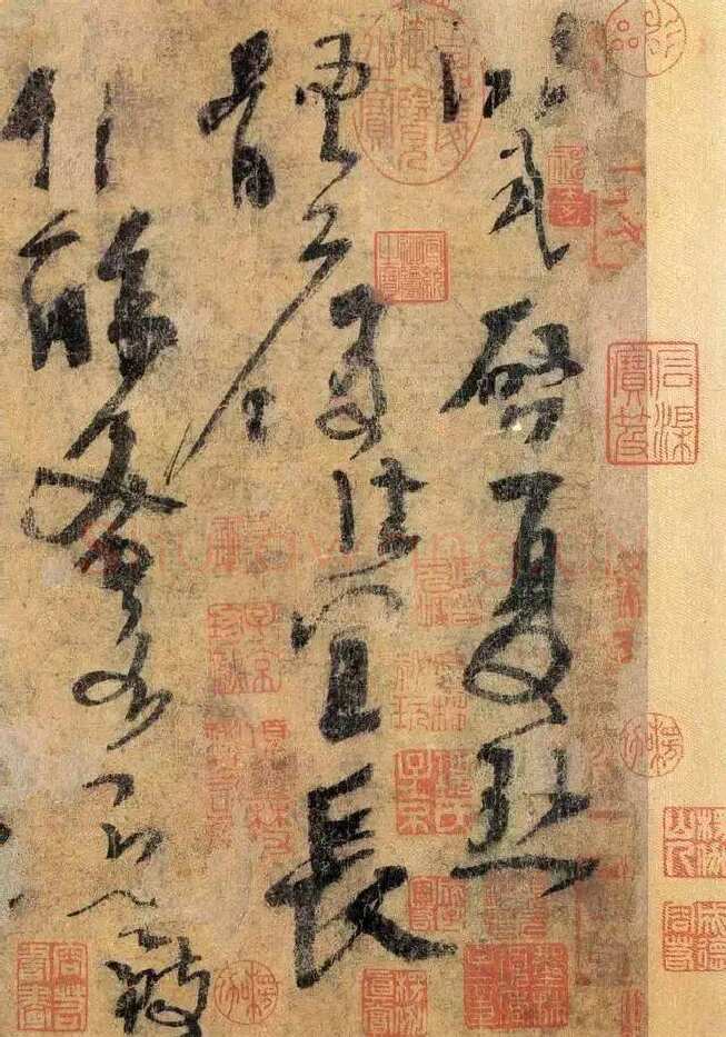 章法:行气跌宕起伏,字距紧密,行距宽松。字与字之间笔断意连,气势贯通,形成一个不可分割的整体。如同欣赏一段节奏多变的音乐,充满了不可预测的韵律感。