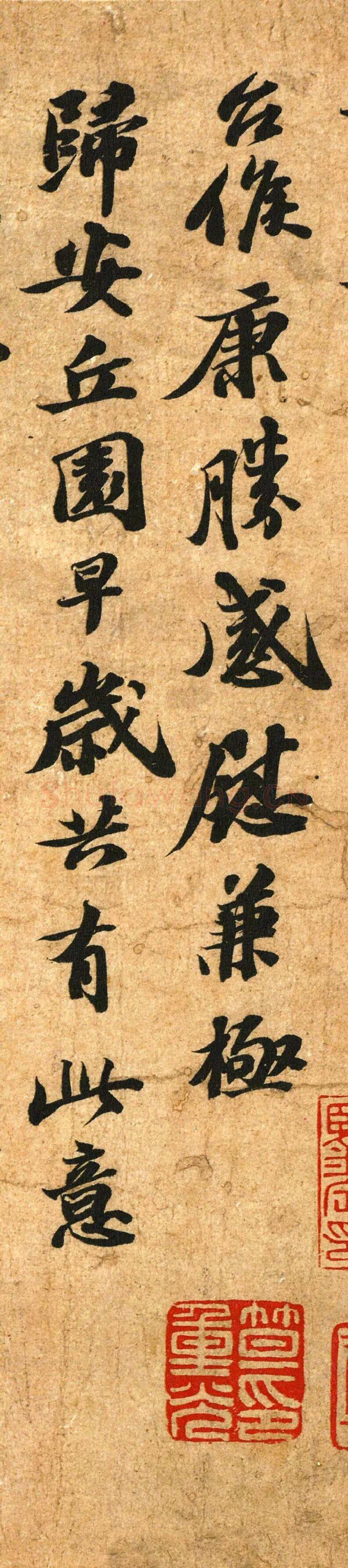 “归安丘园”的整体意思是:辞去官职,离开繁华喧嚣的都市,回归到朴素宁静的乡间田园生活,在那里获得身心的安宁与归宿。