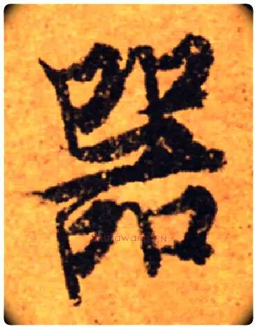 唐书法家欧阳询毛笔行书『器』字的写法图片是书法网编辑整理,收录在毛笔行书写法字典中,本文『器』字毛笔行书字帖临摹范本出自行书千宇文。更多『器』字的毛笔行书写法,欢迎在线免费查阅。部分生僻汉字的毛笔行书写法数据库正逐步完善,敬请关注与期待。书法网无需注册会员,即可直接免费查阅近10万个汉字、300多万张各类书体书法字写法图片的数据库。