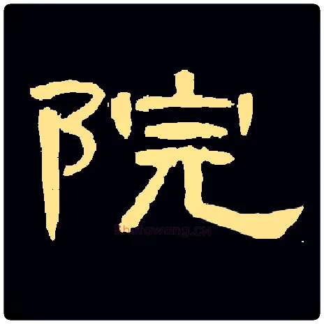 书法家毛笔隶书『院』字的写法图片是书法网编辑整理,收录在毛笔隶书写法字典中,本文『院』字毛笔隶书字帖临摹范本出自汉曹全碑。更多『院』字的毛笔隶书写法,欢迎在线免费查阅。部分生僻汉字的毛笔隶书写法数据库正逐步完善,敬请关注与期待。书法网无需注册会员,即可直接免费查阅近10万个汉字、300多万张各类书体书法字写法图片的数据库。