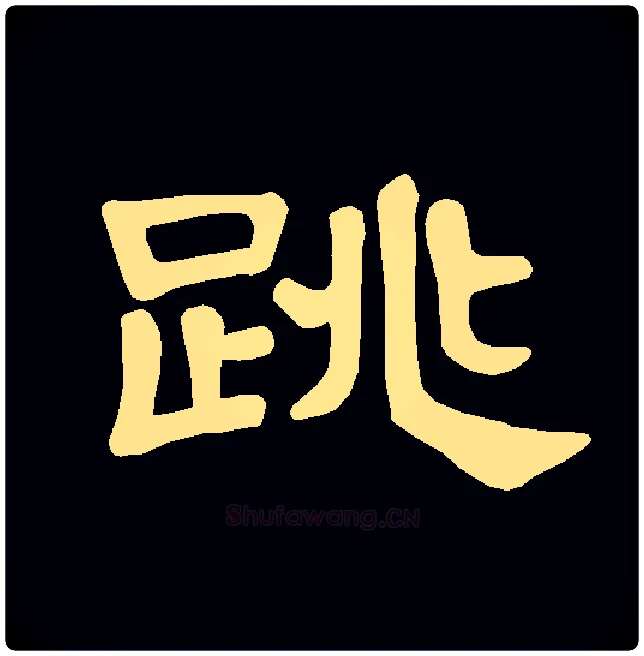 书法家毛笔隶书『跳』字的写法图片是书法网编辑整理,收录在毛笔隶书写法字典中,本文『跳』字毛笔隶书字帖临摹范本出自曹全碑。更多『跳』字的毛笔隶书写法,欢迎在线免费查阅。部分生僻汉字的毛笔隶书写法数据库正逐步完善,敬请关注与期待。书法网无需注册会员,即可直接免费查阅近10万个汉字、300多万张各类书体书法字写法图片的数据库。