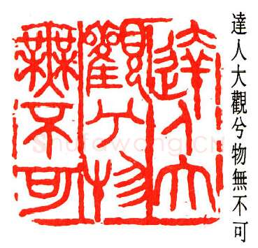一九一八年,星州辑生平得意之作一百六十钮为《耦花盫印存》四册,缶翁亲为撰序,文云:『余嗜印学垂五十年,此中三昧,审之独详。书画之暇,间作《缶庐印存》,一生所作,仅存百余方,匠心构思,累黍万顷。千载下之人,而欲孕育千载上之意味,时流露於方寸铁中,则虽四五文字,宛然若断碑坠简,陈列几席,古趣盎如,不亦难乎!星周与余有同嗜焉:壹志印学,无所旁涉,为刻《耦花盫印存》,越十年而成。请益於余,展读再四,精粹如秦玺,古拙如汉碣,兼以彝器封泥,靡不采精撷华,运智抱拙,星周之心力俱瘁矣,星周之造诣亦深矣。夫刻印本不难,而难於字体之纯一??,配置之疏密,朱白之分布,方圆之互异。更有甚者,信手捉刀,鲁鱼亥豕,散见零星,辄谓缪篆,如斯若可,无庸研究。而陋塞之士,遂据以为根柢,则此贻祸於印学者,实非浅鲜。星周通六书之旨,是以印学具有渊源,余虽与之谈艺,盖欣吾道之不孤也。余曷敢为之序。』读此不独可知印虽方寸天地,然殊不易工,此中甘苦,缶翁陈之详至;而缶翁之谦抑与乐於提携後学,尤令人仰羡无已。星周印作,其後复有人辑为《徐星周印集》初至五集,每集二册,合共十册,较《耦花盫印存》尤为赅备。