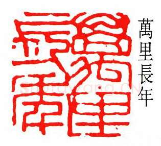 治印初得祝子祥指授,先後取法於邓石如、吴让之、赵之谦、吴昌硕诸家,复上追前古,所诣益深,其篆刻润例乃赵叔孺、王二苎、吴湖帆、褚德彝、汤定之、冯超然等诸公所代订,中有『腕力之强,超绝侪辈,兴至奏刀,便觉古趣盎然,置之秦汉印谱间,无分轩轾』。又虞逸夫跋其遗作云:『万里治印,胎息秦汉,斟酌皖浙,旁及封泥瓦当之奇丽,旁徨洽浃,寓变化於法度之中,巧而不纤,拙而弥古,浑厚典重,如其为人。』可谓知言。生平治印至夥,一九三八年张大千为作《九百石印精舍圆》,尝附手制印拓一百六十八方於卷後。一九八一年,其妹清和女史竭两年之力辑成《曼福堂印谱》,并分钤条幅以赠各博物馆,毕生佳构,多萃於斯。