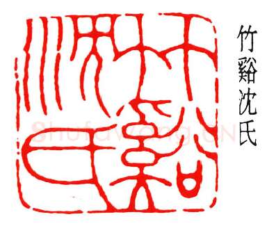 四十六岁时,因手拨电风扇开关触电伤脑,曾卧病两年,愈後每伏案稍久,即感头晕目眩。此後,刻印必仰卧於藤榻之上,右手执刀,左手握石以外,小指上悬以小镜,两手擎空操作,边刻边以小镜照示,习以为常,作边款亦复如此。胸间石屑遍陈,不之顾也。因印面向下,刀锋取势较难,於笔力不无影响。喜吸烟,凡刻印写字,唇间必含—烟斗,烟之熄灭与否在所不计,以为如此可助文思,否则便感若有所失。书工数体,金文、小篆,均匀整而劲健;晚年从汉洗文字悟得天趣,参以缪篆排叠之法以作篆隶,朴厚古拙,尤独出冠时;隶楷亦自出机杼,别树一帜。平居和易,乐於扶掖後辈。不独悉心传艺,即对生活上困难者,亦竭力相助。弟子中若韩登安、顿立夫、吴朴堂等,皆深受其沾惠。余一九五九年夏游沪,以张鲁盫之介而得蒙款接,福老知余曾从学康侯先生,乃执康翁曩时所书青绿山水纸扇相见,意至殷渥。後并赠余『师承魏冢传心得;功自兰亭换骨来』篆联,及《颂鼎》临本。是时手已颤甚,惟晨起短暂时间可作书,若摹《颂鼎》,非数日不能毕。拜领之余,余感愧交并者再。福老晚年,被聘为浙江省文史研究馆馆员及上海中国画院画师,并任中国金石篆刻研究社筹委会主任。以摄护腺肿胀开刀未能愈合,寻复转化为肺炎,不治逝世。
