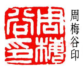 生平刻印极多,印稿不自珍惜,至晚岁始有《古吴周梅谷周甲後留存》等谱传世。至刻碑也,苏州素以刻碑著名,又与南京较近,在二十年代前後,南京紫金山一带修建陵园大墓特多,若中山陵等巨碑,皆苏州所承制。凡重要石刻,同道均敛手推梅谷任之。文字书法之外,亦精刻人物及其他绘画,至—九四五年始以年迈体衰而搁刀。