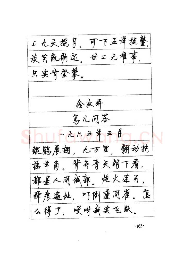 名称:顾仲安《毛泽东诗词钢笔楷行书字帖》书法家:顾仲安书体:楷书分类:硬笔楷书字帖年代:当代文件格式:图片/pdf/压缩包作品材质:纸质书籍备注说明:硬笔楷书字帖:顾仲安《毛泽东诗词钢笔楷行书字帖》 首页上页1213141516下页尾页
